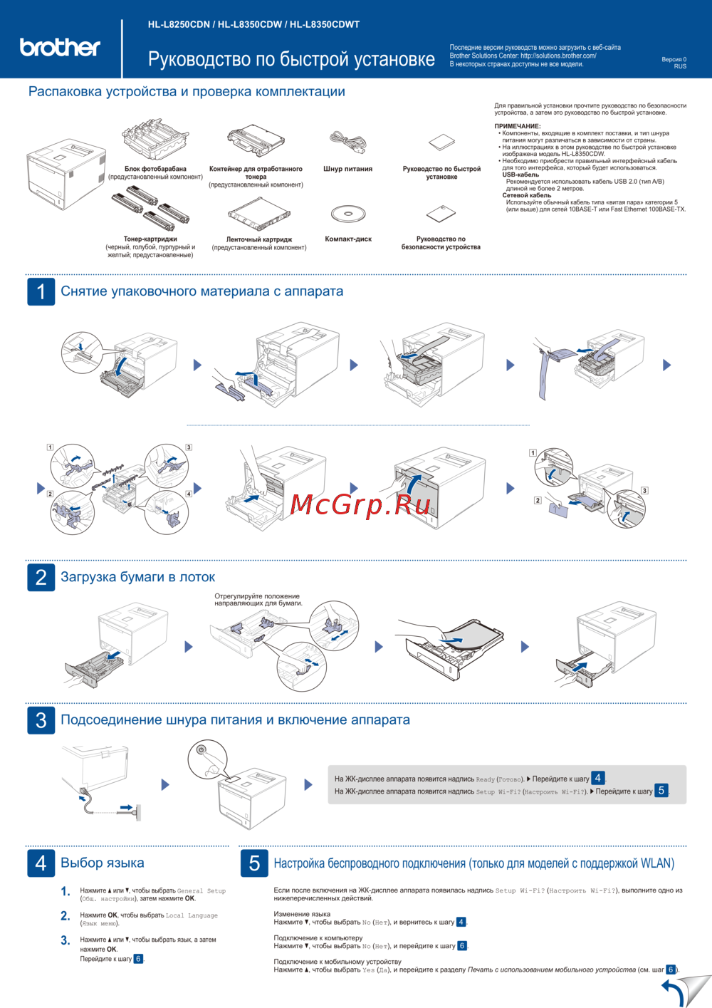 Brother HL-L8350CDW — инструкция по быстрой установке устройства с ЖК-дисплеем [1/2]