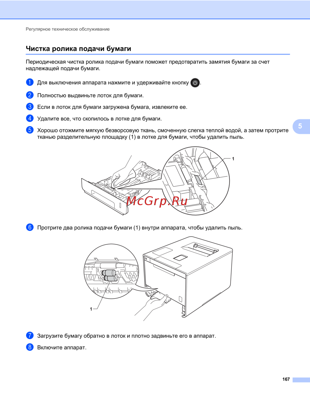 Чистка ролика подачи бумаги 5