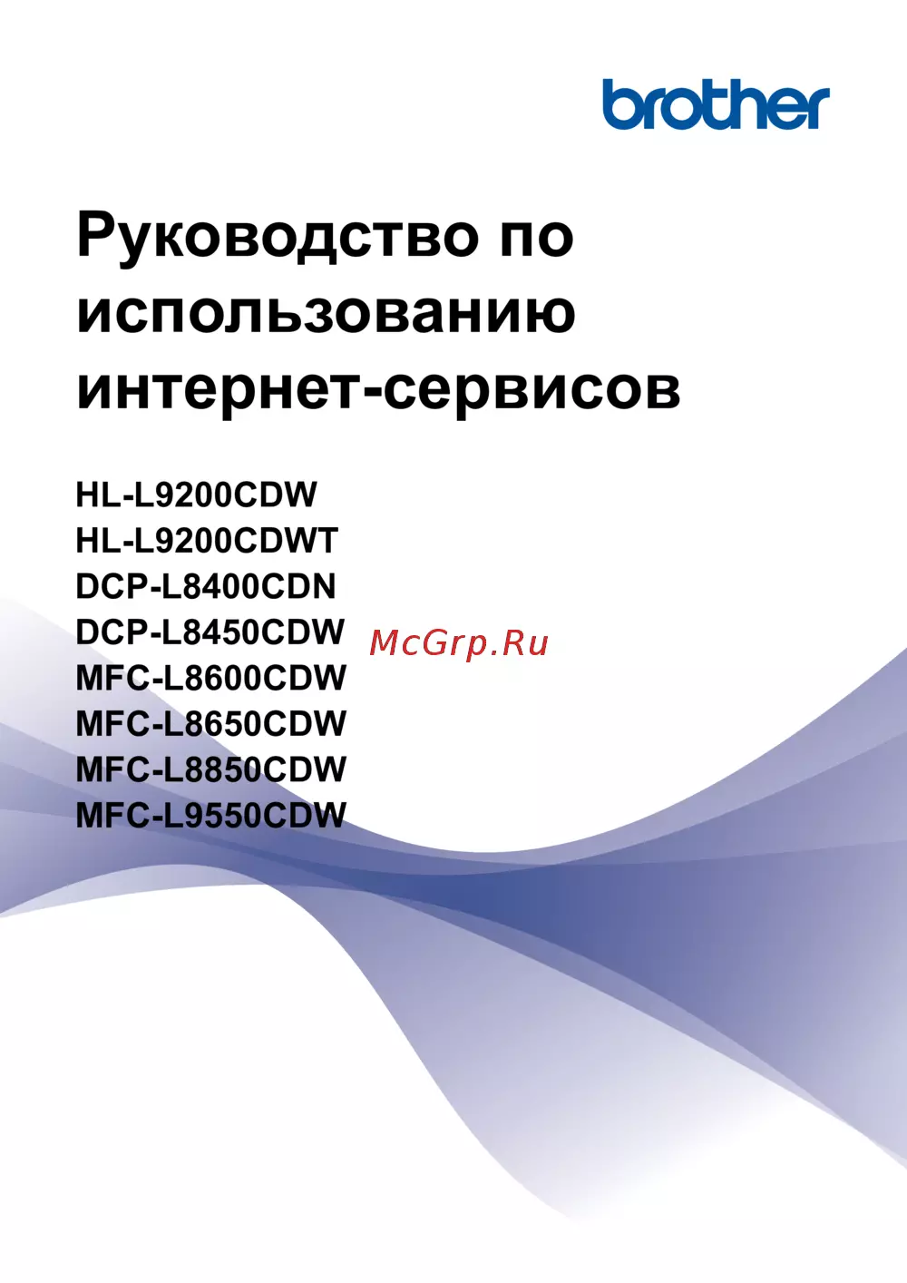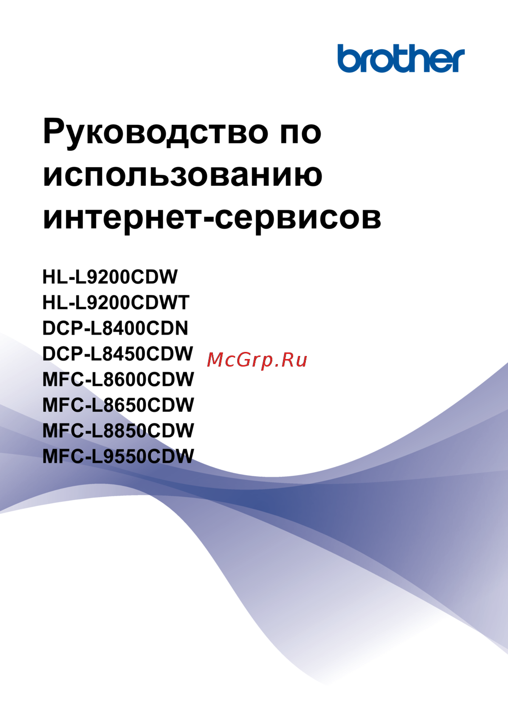 - Руководство по использованию интернет сервисов hl l9200cdw hl l9200cdwt dcp l8400cdn dcp l8450cdw mfc l8600cdw mfc l8650cdw mfc l8850cdw mfc l9550cdw p.1