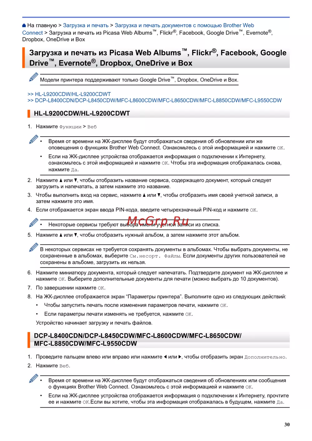 - Руководство по использованию интернет сервисов hl l9200cdw hl l9200cdwt dcp l8400cdn dcp l8450cdw mfc l8600cdw mfc l8650cdw mfc l8850cdw mfc l9550cdw p.1