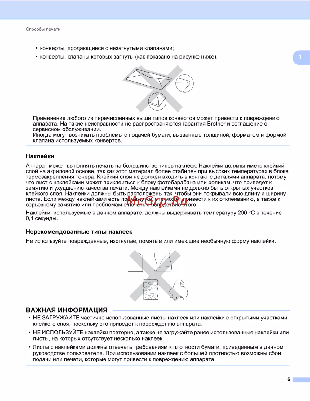 Brother HL-L9200CDWT [13/228] Нерекомендованные типы наклеек