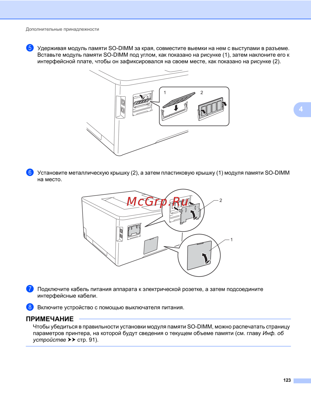 параметров принтера, на которой будут сведения о текущем объеме памяти (см. главу Инф. об