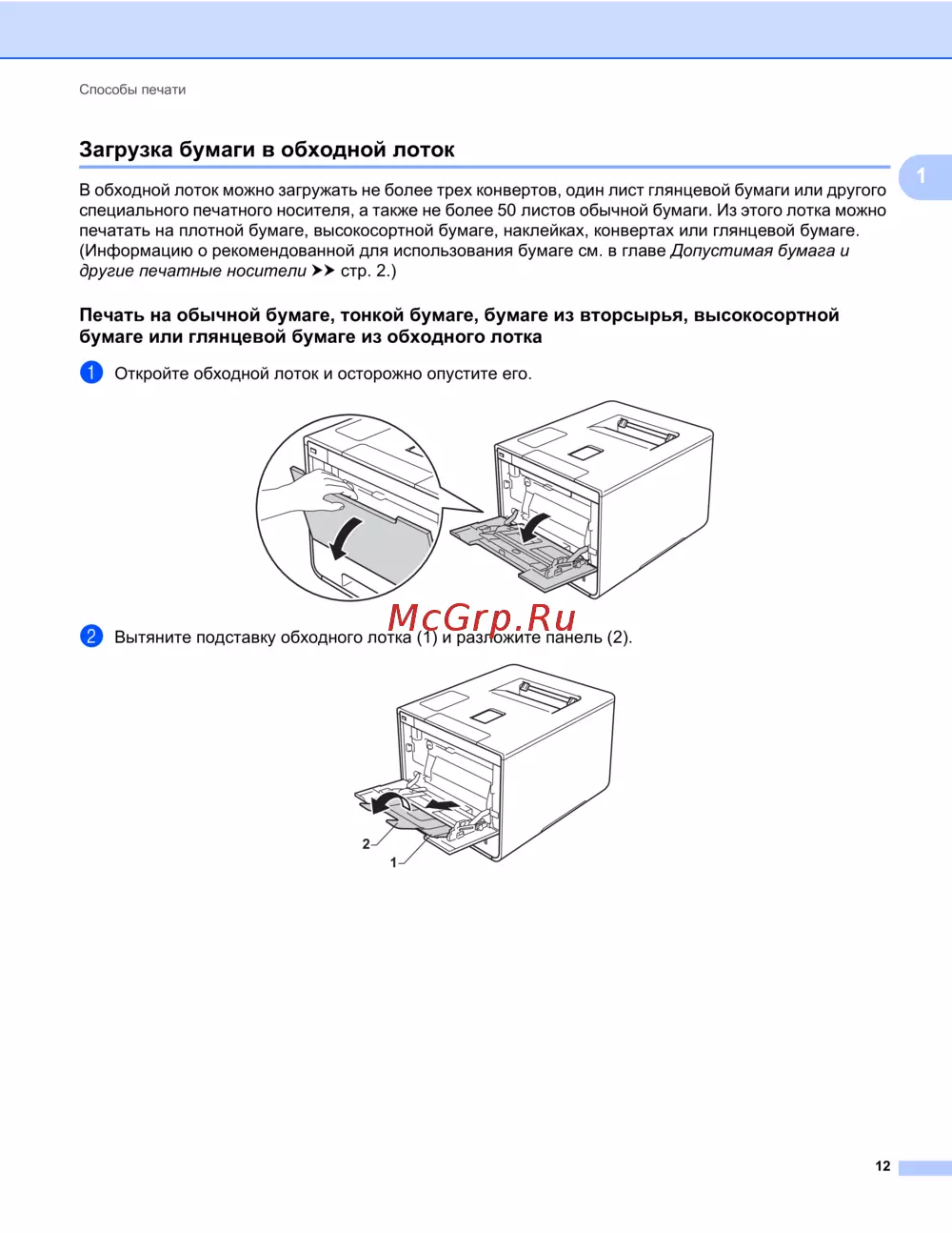 - Печать на обычной бумаге тонкой бумаге или бумаге из вторсырья из лотка 1 и лотка p.15