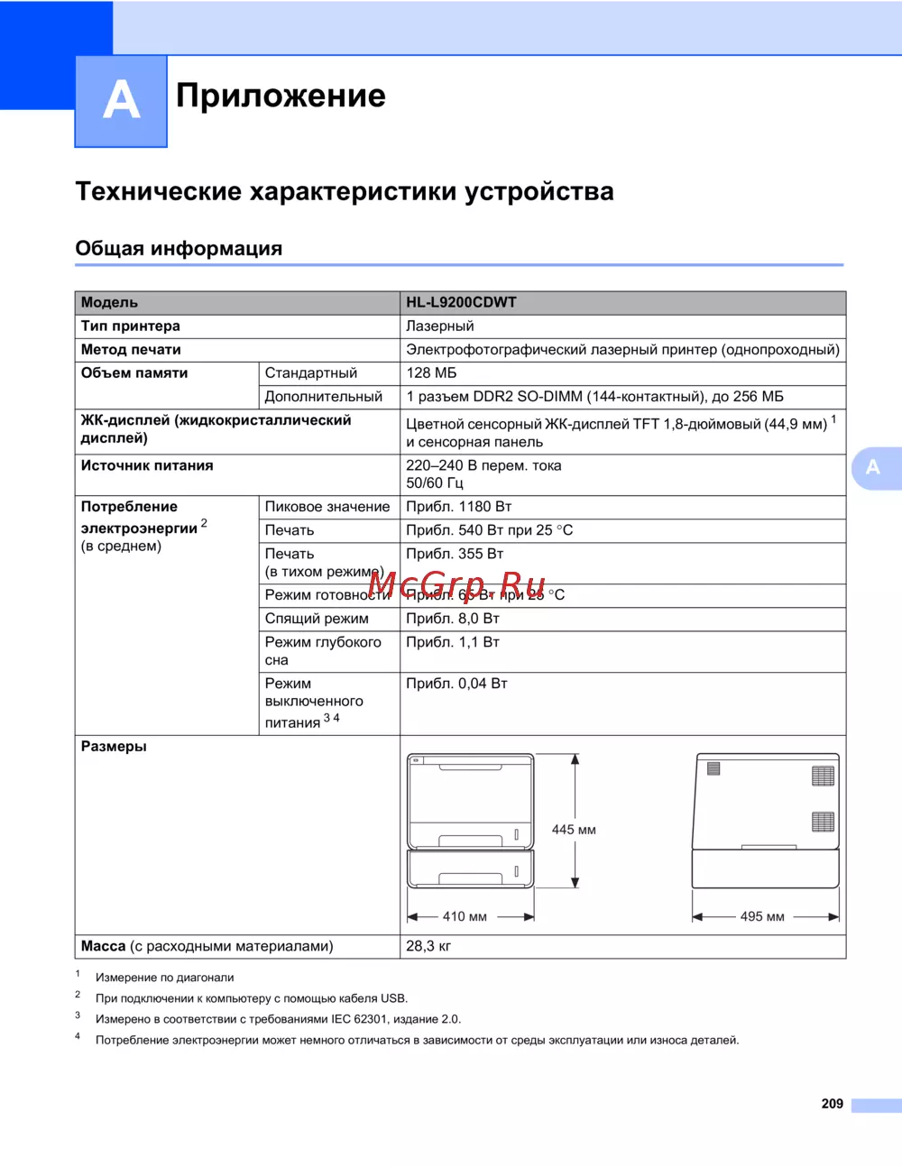Brother HL-L9200CDWT — технические характеристики лазерного принтера: особенности и параметры [216/228]