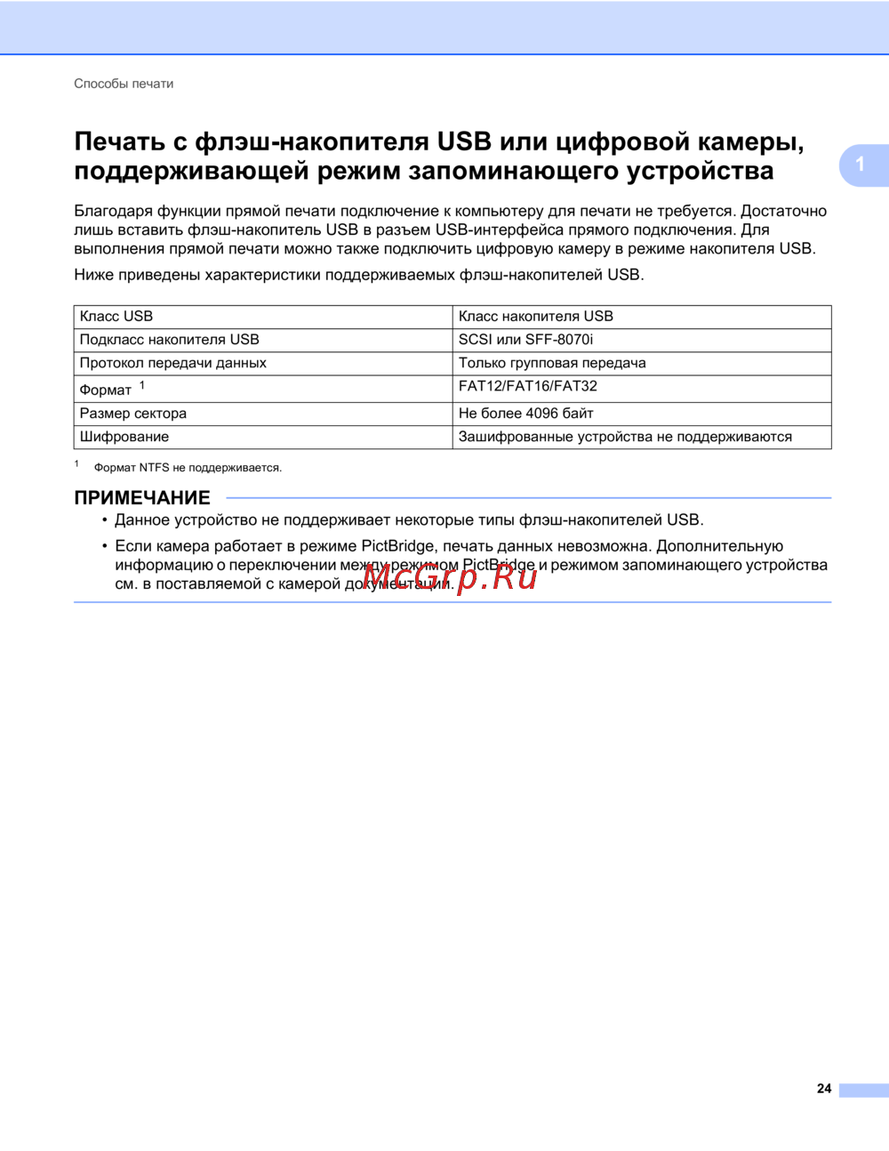- Печать с флэш накопителя usb или цифровой камеры поддерживающей режим запоминающего устройства p.31