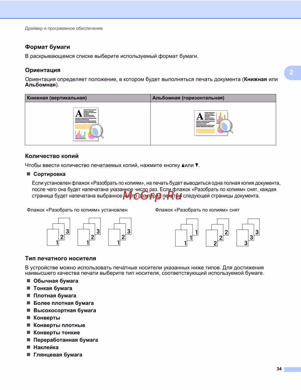 - Тип и формат бумаги p.9
