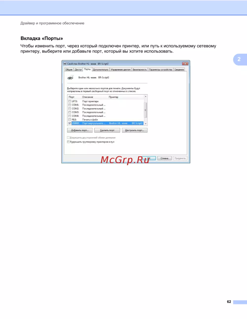 принтеру, выберите или добавьте порт, который вы хотите использовать.