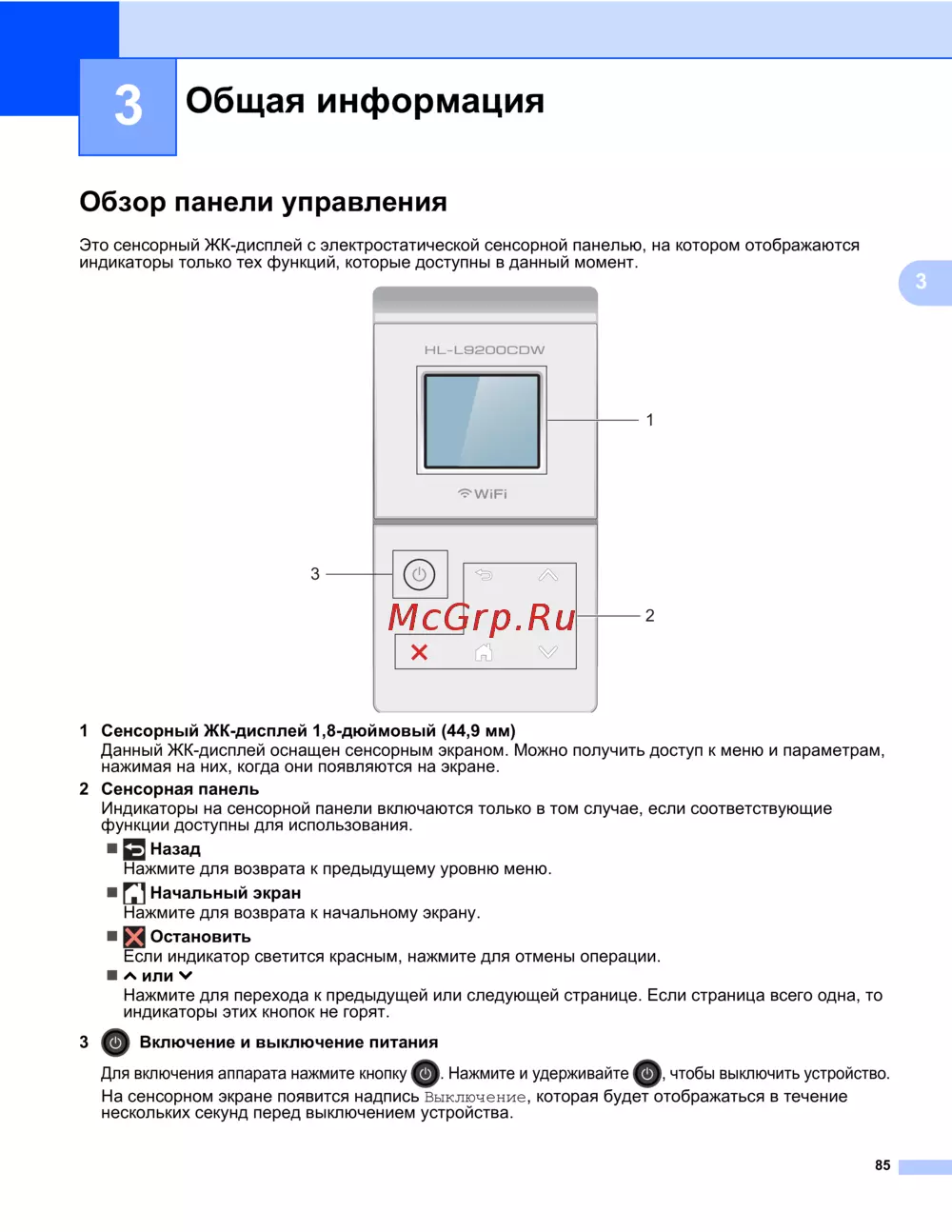Brother HL-L9200CDWT — обзор сенсорного ЖК-дисплея и панели управления устройства [92/228]