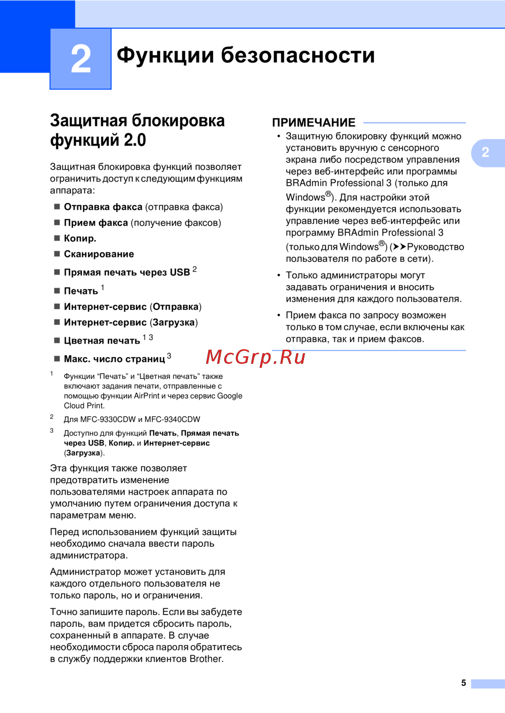 Brother MFC-9140CDN — защитная блокировка функций: управление доступом и безопасность [11/82]