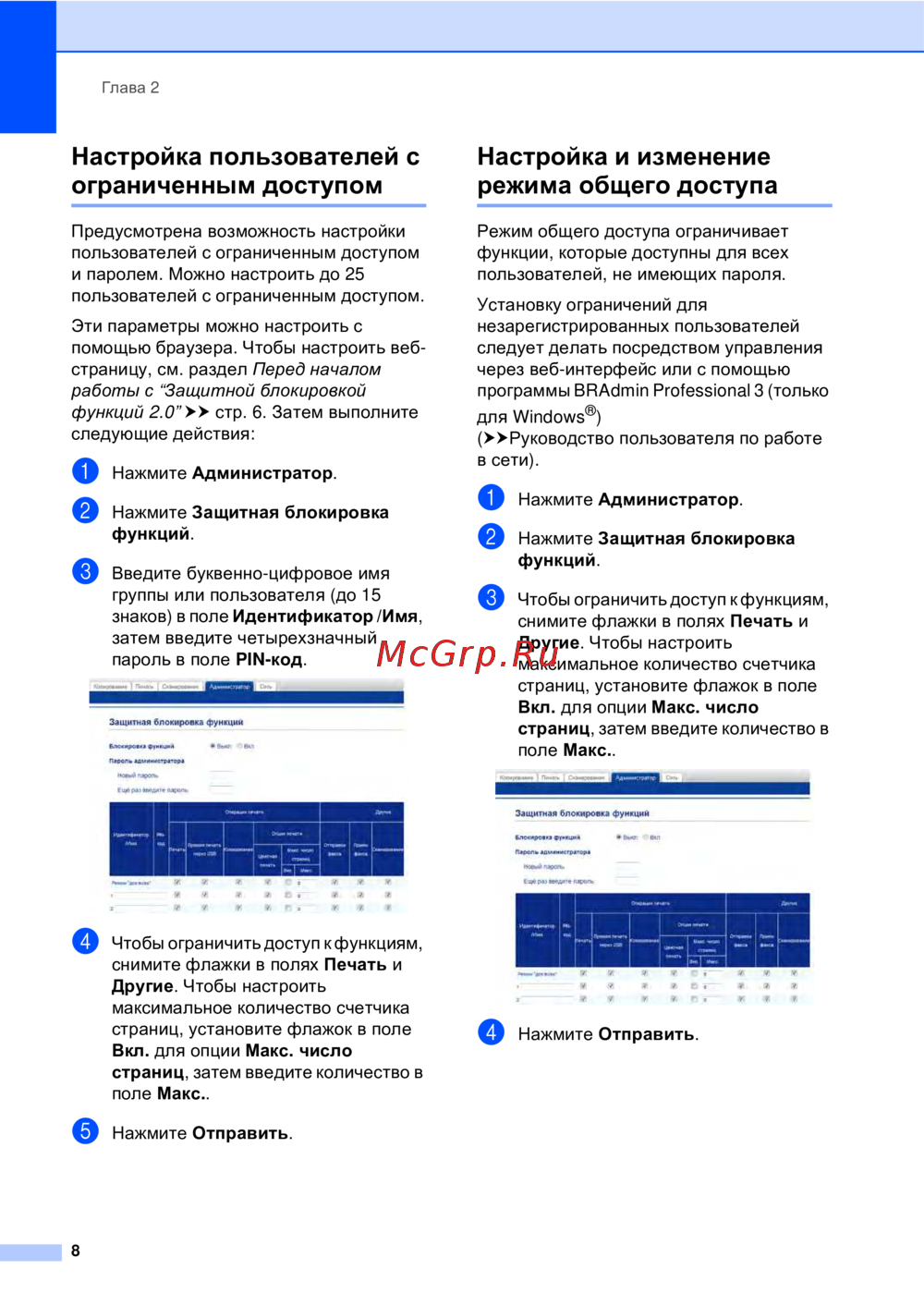 Brother MFC-9140CDN — настройка пользователей с ограниченным доступом и паролем [14/82]