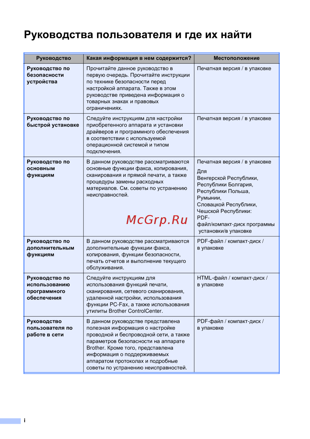 ![Brother MFC-9140CDN [2/82] Руководства пользователя и где их найти](/views2/1251007/page2/bg2.png)