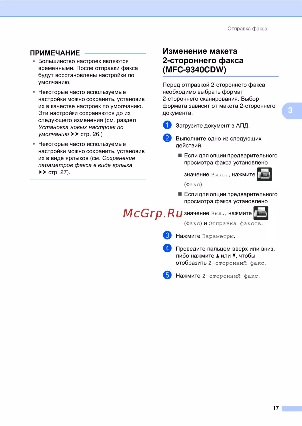 ![Brother MFC-9140CDN [23/82] Изменение макета 2 стороннего факса mfc 9340cdw](/views2/1251007/page23/bg17.png)