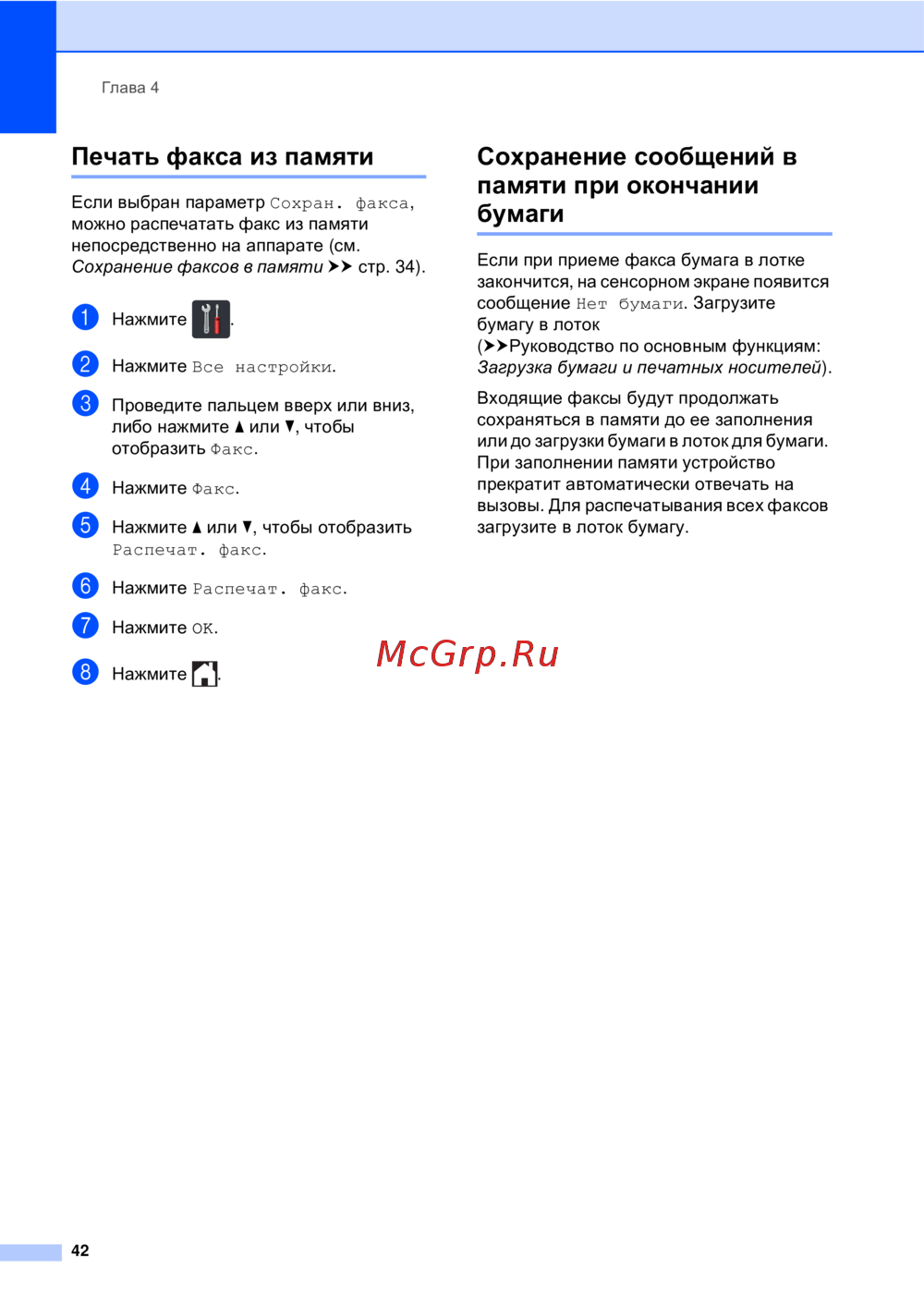 Brother MFC-9140CDN [48/82] Сохранение сообщений в памяти при окончании бумаги