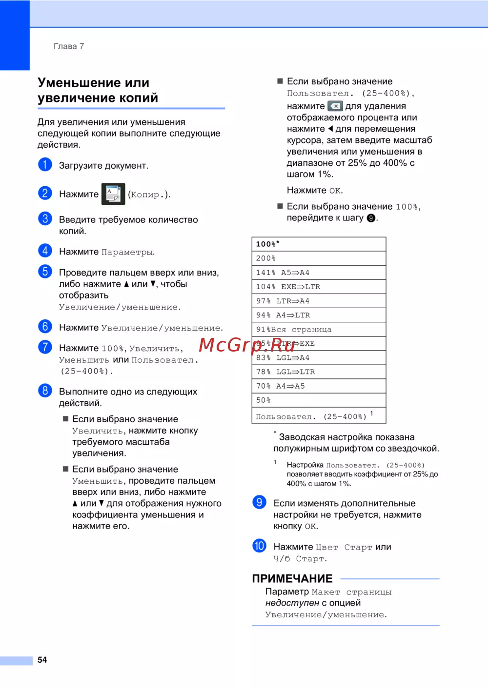Brother MFC-9140CDN — инструкция по увеличению и уменьшению копий документа [60/82]