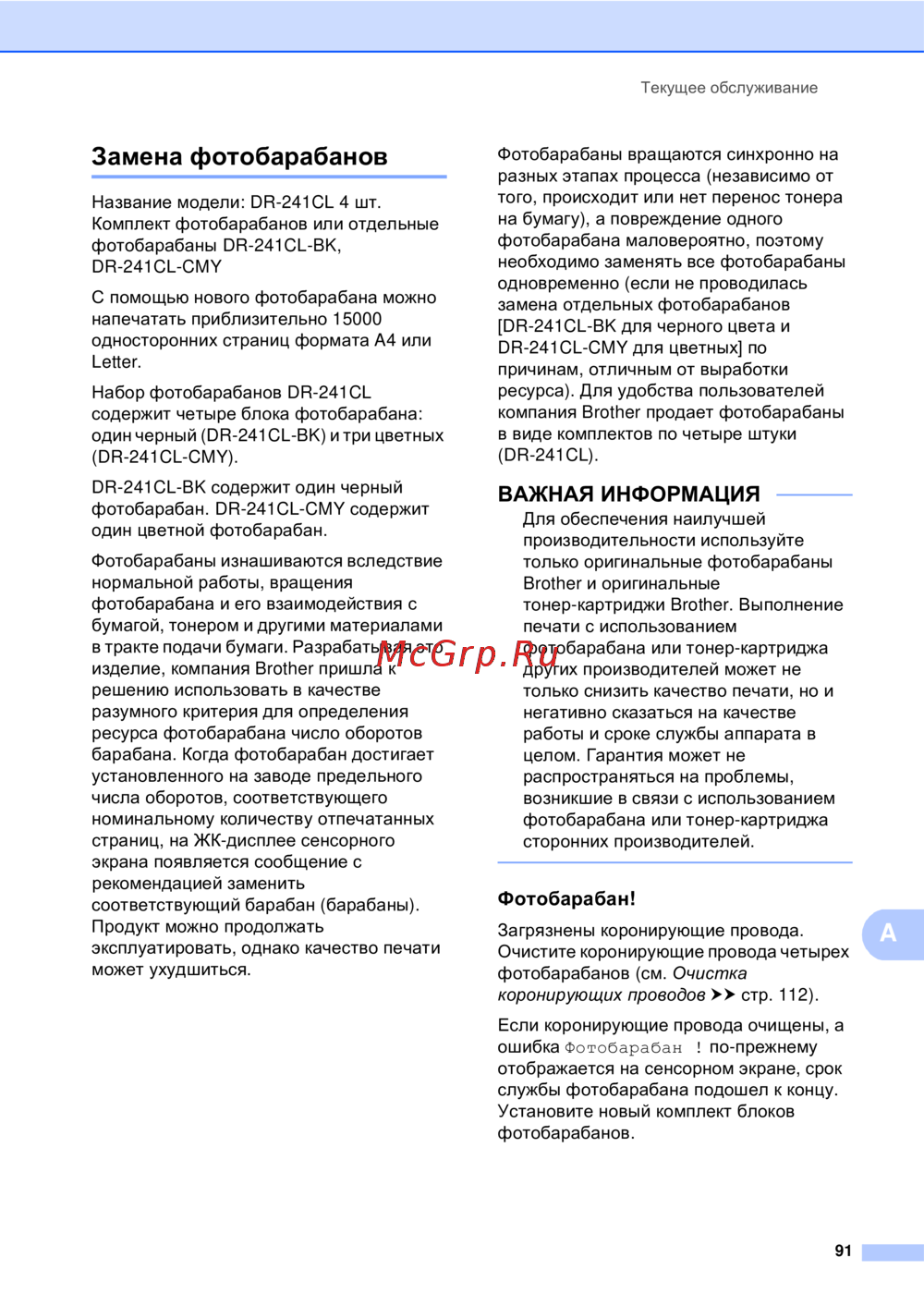 Brother MFC-9330CDW — замена фотобарабанов: советы по обслуживанию и выбору [101/264]