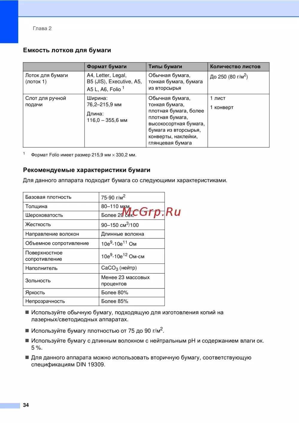 ![Brother MFC-9330CDW [44/264] Рекомендуемые характеристики бумаги](/views2/1251010/page44/bg2c.png)