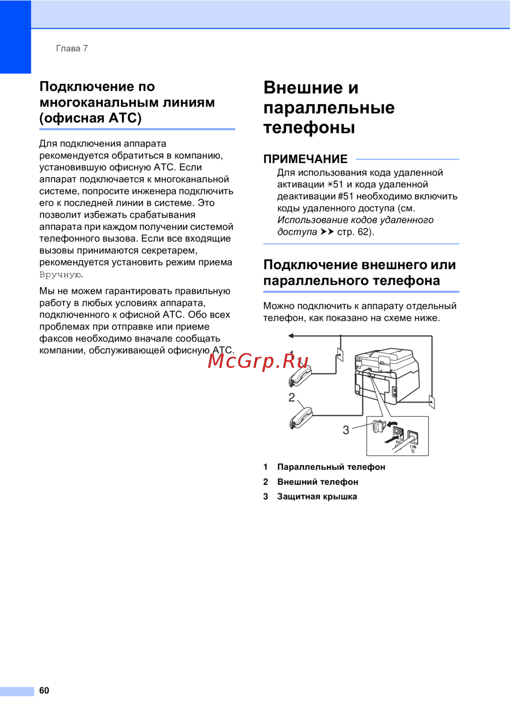 Brother MFC-9330CDW — подключение аппаратов к офисной АТС и многоканальным линиям [70/264]