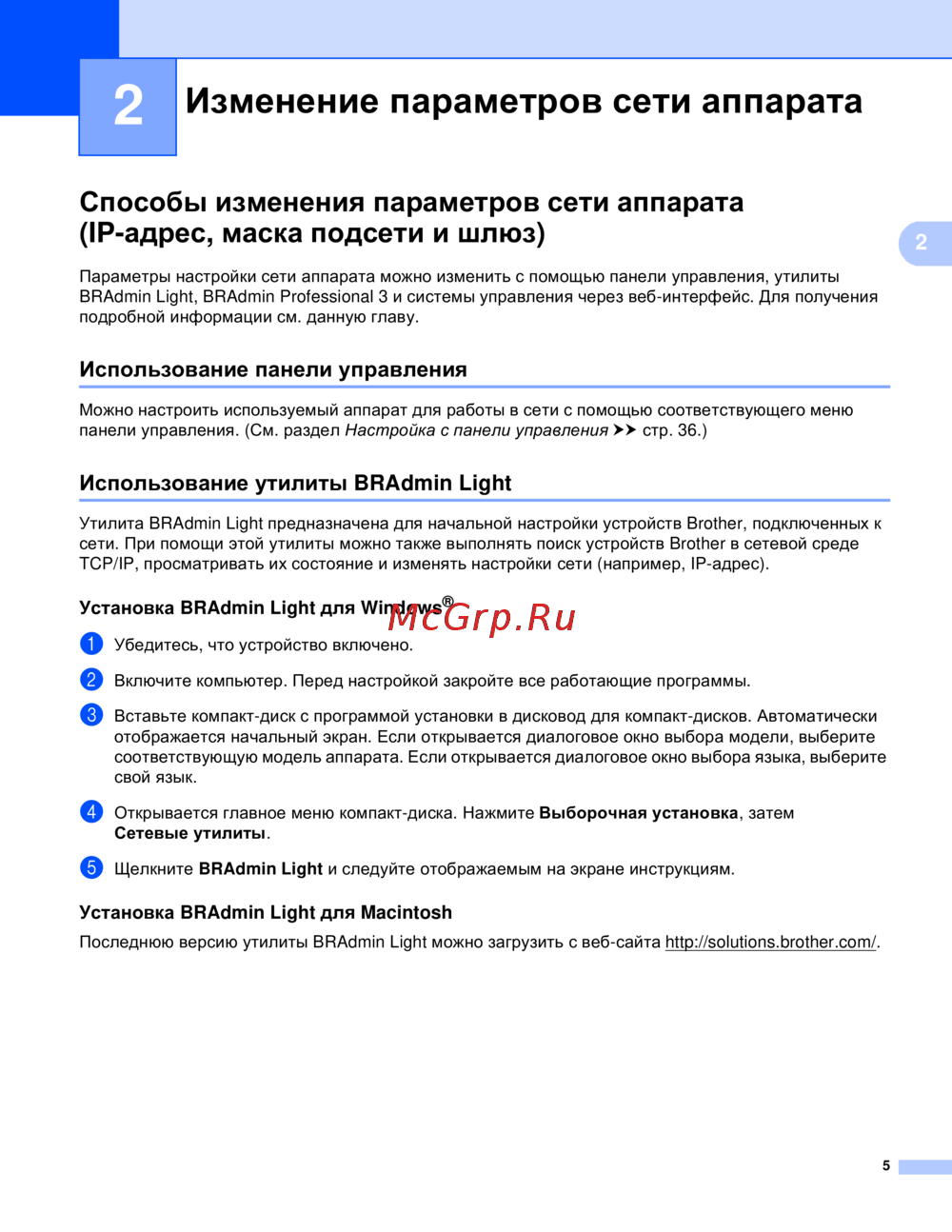 Утилита BRAdmin Light предназначена для начальной настройки устройств Brother, подключенных к