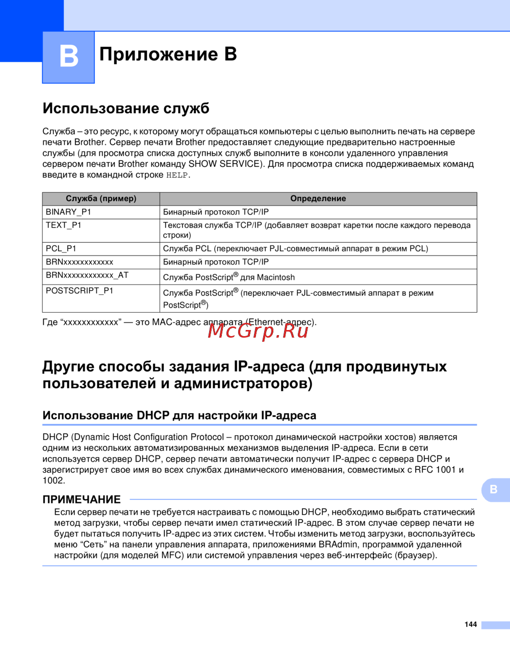 печати Brother. Сервер печати Brother предоставляет следующие предварительно настроенные