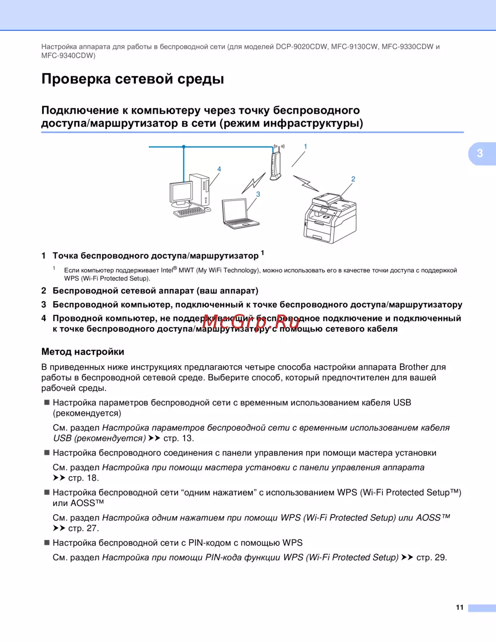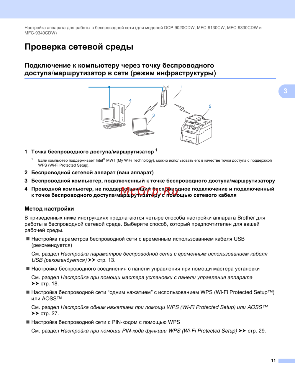 - Настройка аппарата для работы в беспроводной сети для моделей dcp 9020cdw mfc 9130cw mfc 9330cdw и mfc 9340cdw 10 p.3