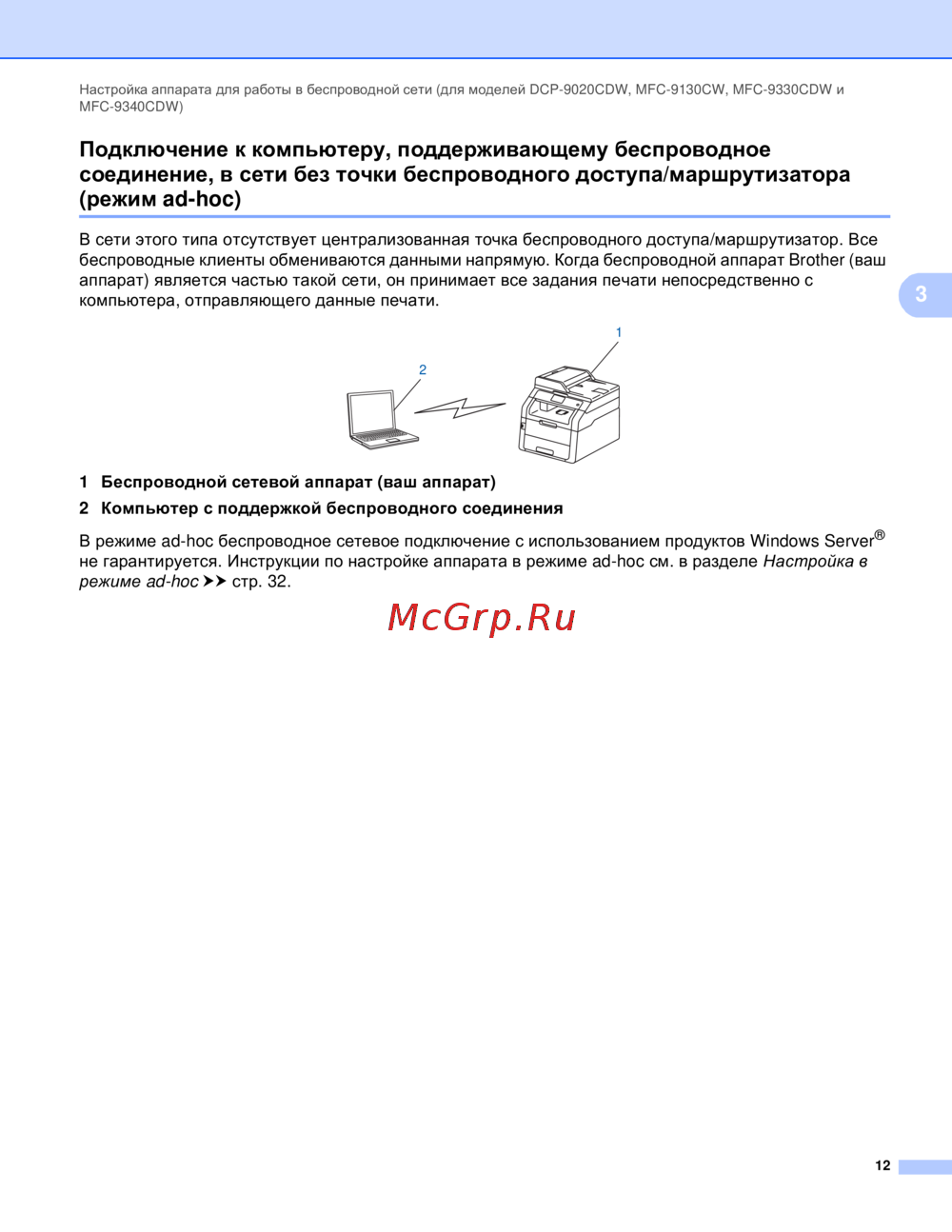 - Настройка аппарата для работы в беспроводной сети для моделей dcp 9020cdw mfc 9130cw mfc 9330cdw и mfc 9340cdw 10 p.3