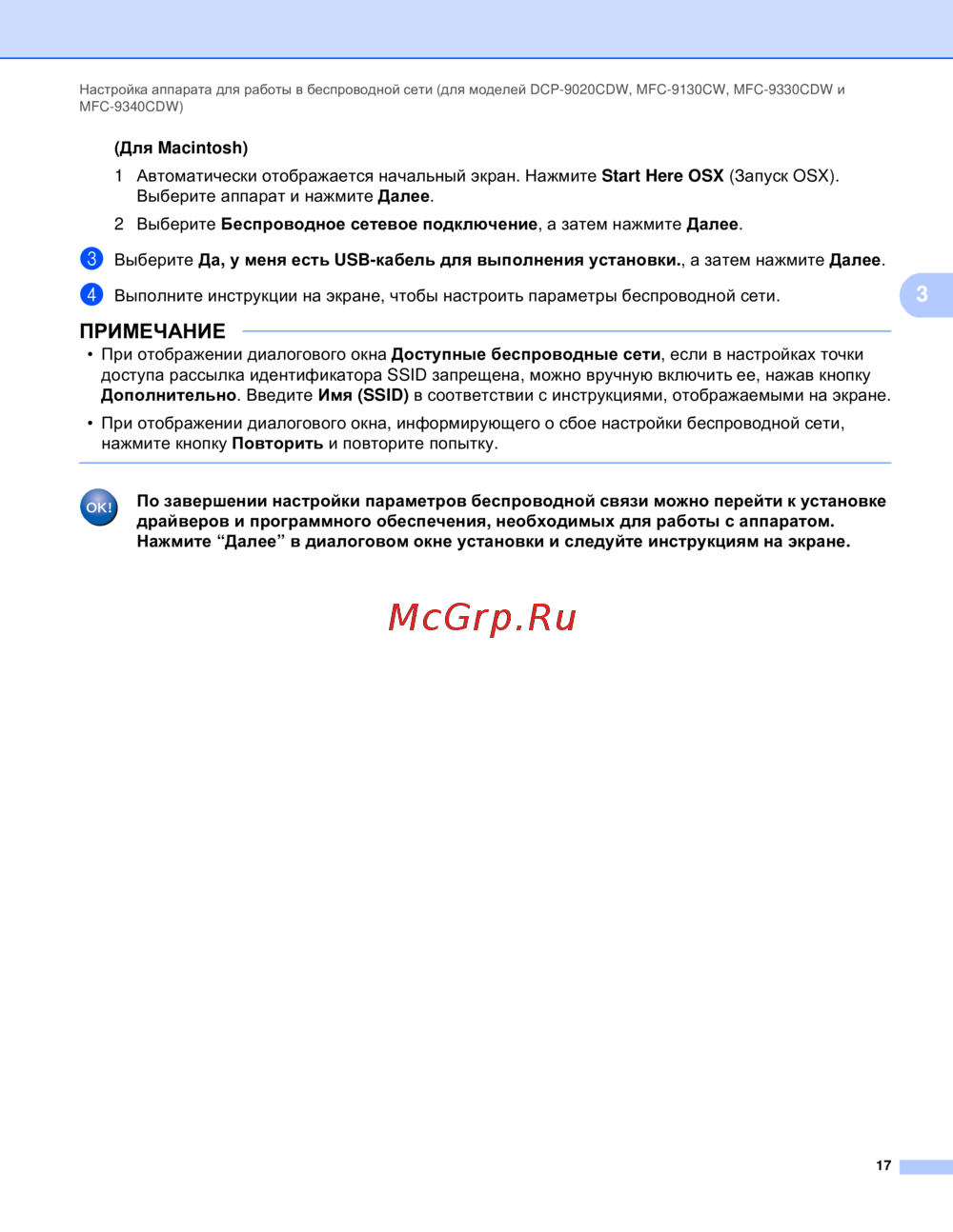 - Настройка аппарата для работы в беспроводной сети для моделей dcp 9020cdw mfc 9130cw mfc 9330cdw и mfc 9340cdw p.16