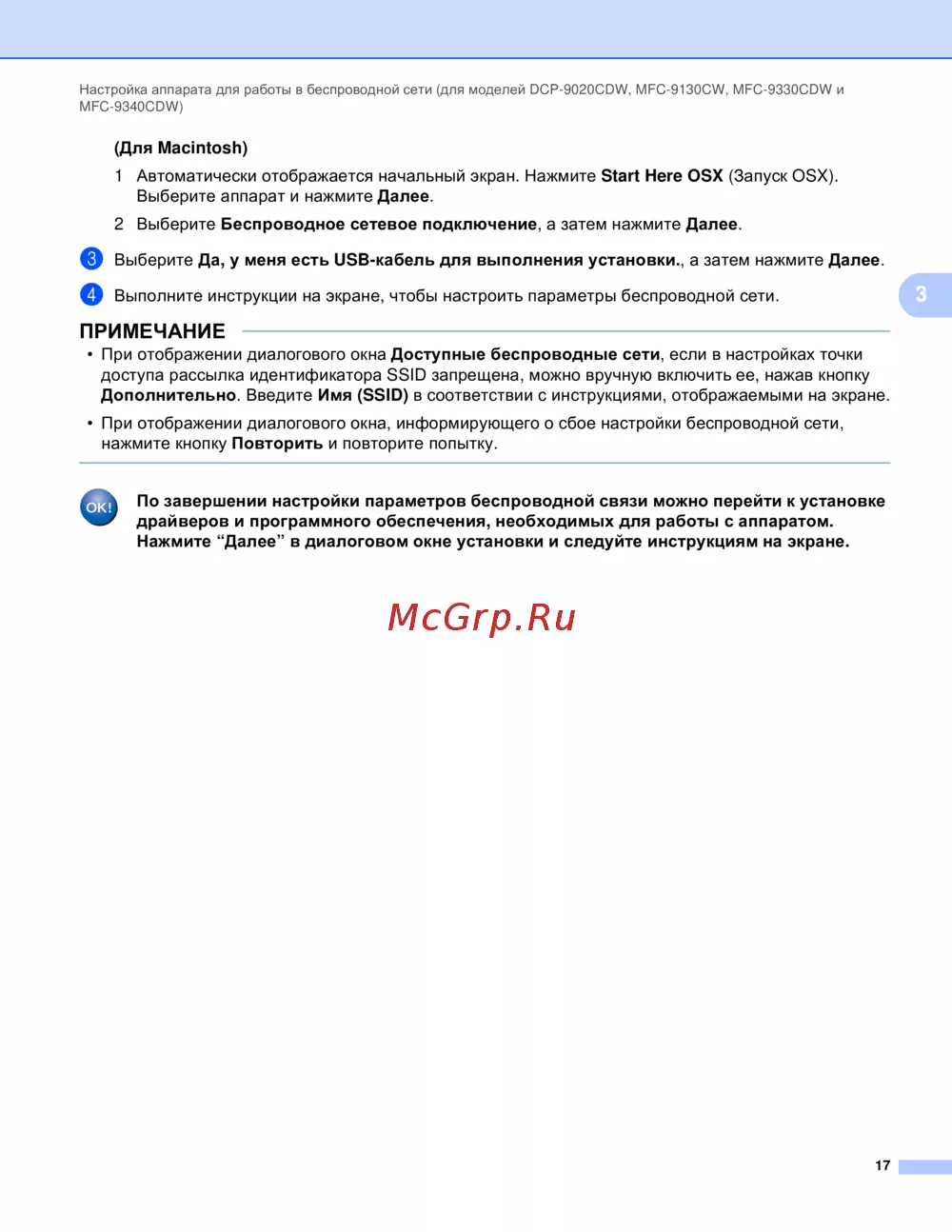 - Настройка аппарата для работы в беспроводной сети для моделей dcp 9020cdw mfc 9130cw mfc 9330cdw и mfc 9340cdw 10 p.3