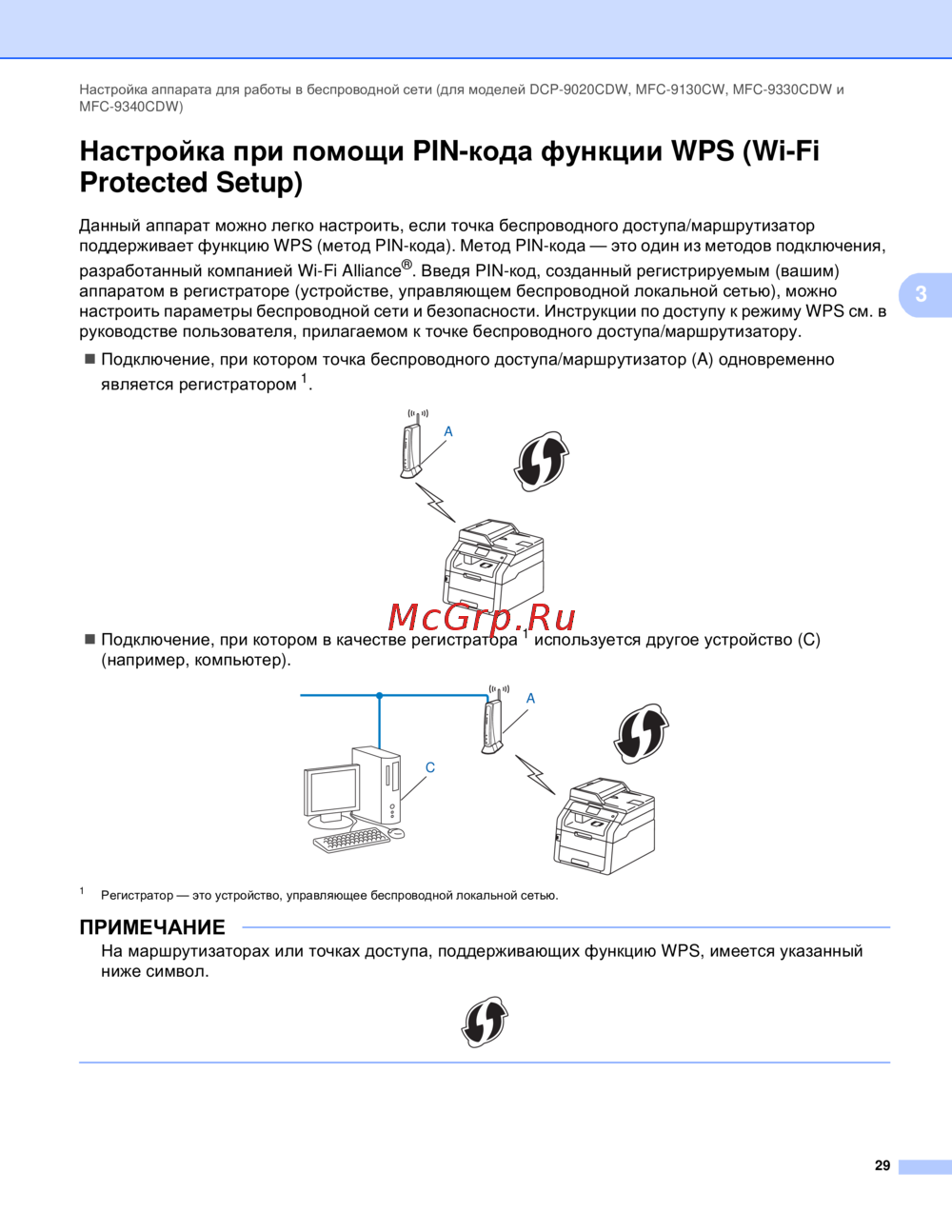 - Настройка аппарата для работы в беспроводной сети для моделей dcp 9020cdw mfc 9130cw mfc 9330cdw и mfc 9340cdw p.16