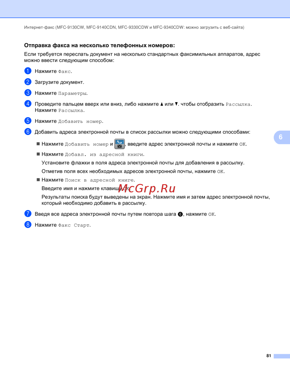 - Интернет факс mfc 9130cw mfc 9140cdn mfc 9330cdw и mfc 9340cdw можно загрузить с веб сайта 74 p.4