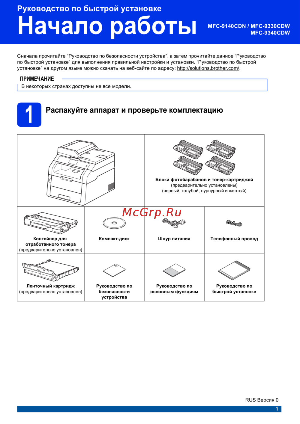 - Руководство по быстрой установке mfc 9140cdn mfc 9330cdw mfc 9340cdw p.1