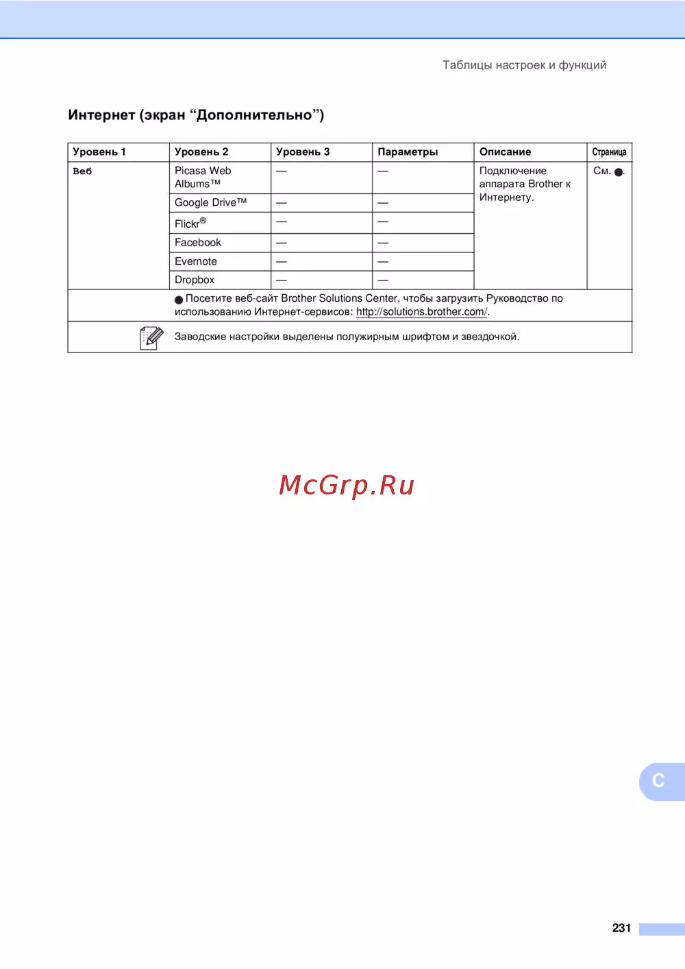 использованию Интернет-сервисов: http://solutions.brother.com/