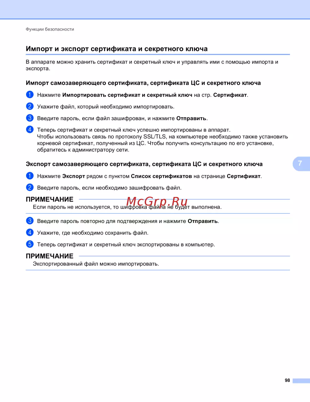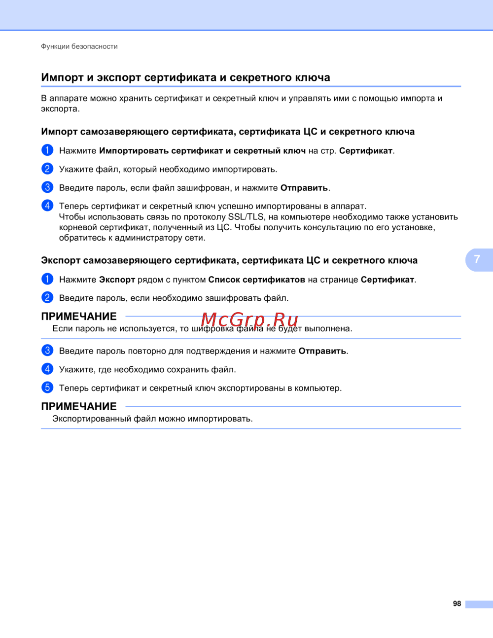 Brother MFC-9340CDW [104/156] Экспорт самозаверяющего сертификата сертификата цс и секретного ключа
