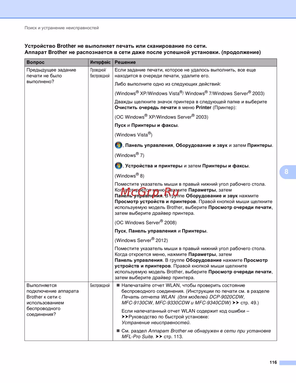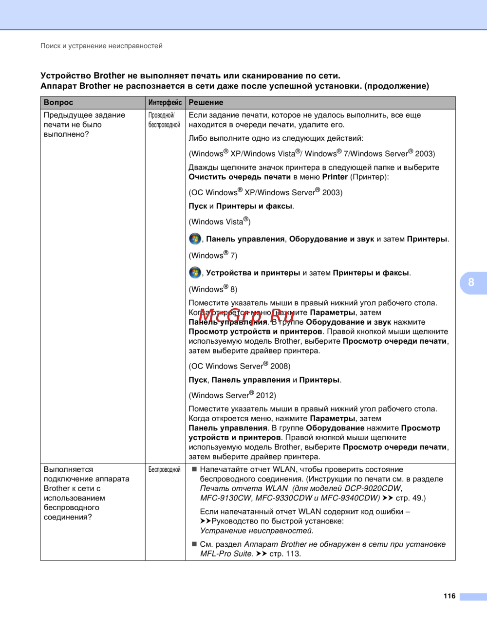 Brother MFC-9340CDW — как устранить неисправности печати и подключения к сети [122/156]