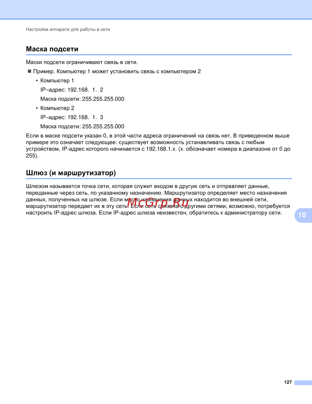 Brother MFC-9340CDW — настройка сетевых устройств: IP-адреса и маски подсети [133/156]