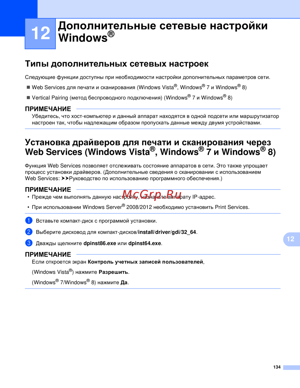 - Удаление драйверов для печати и сканирования через web services windows vist p.142