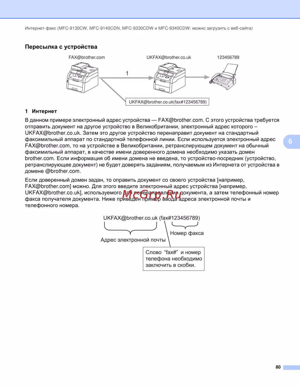 UKFAX@brother.co.uk. Затем это другое устройство перенаправит документ на стандартный