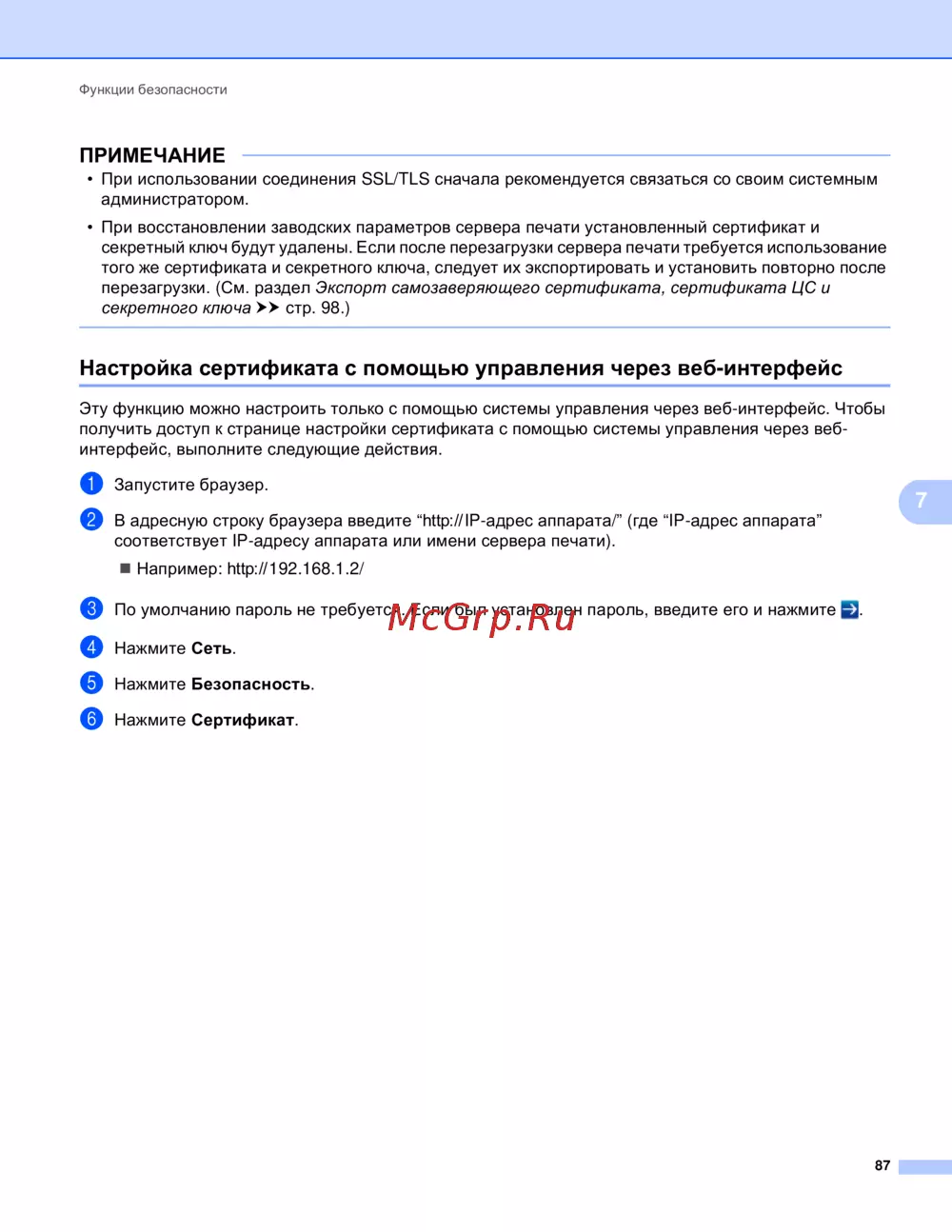 Настройка сертификата с помощью управления через веб-интерфейс 7