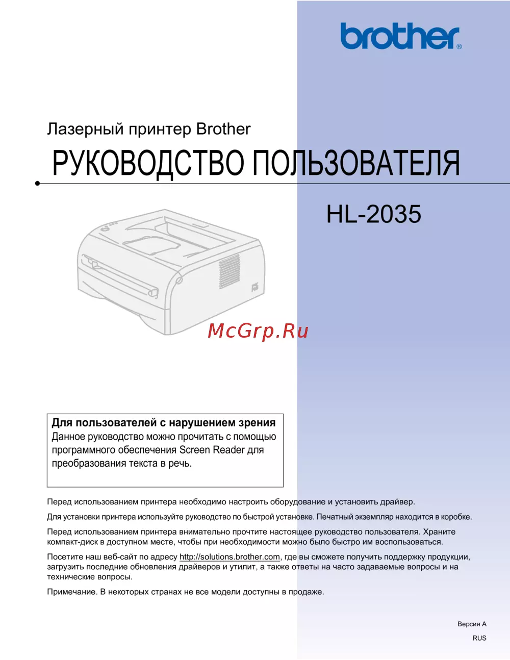 Brother HL-2035R — руководство пользователя для лазерного принтера [1/94]