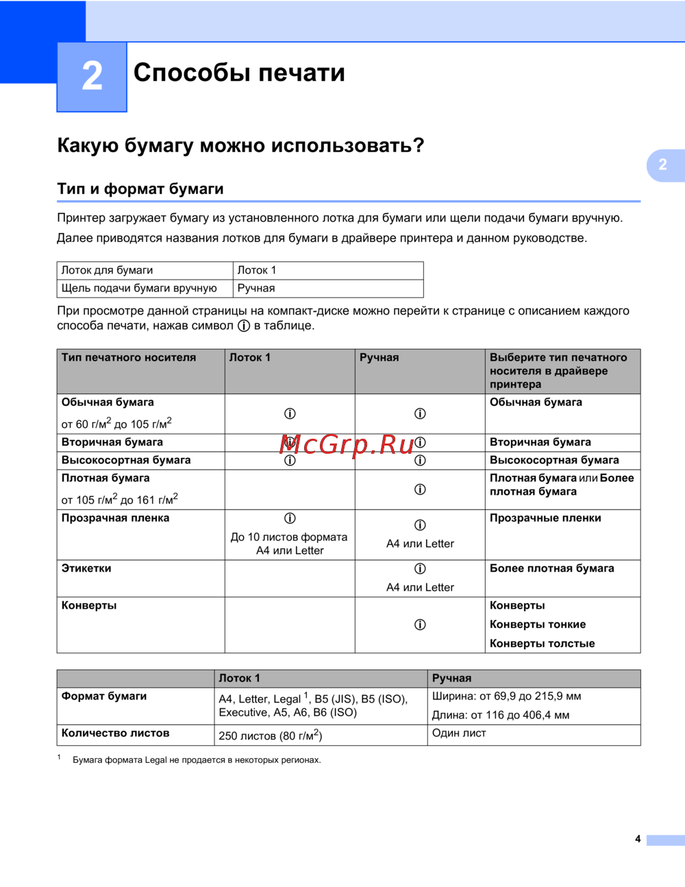 Узнайте, какую бумагу можно использовать для печати, включая типы и форматы. Подробная информация о лотках и способах загрузки бумаги.