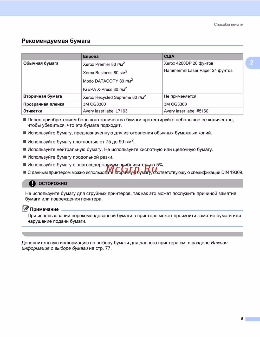 - Сначала убедитесь в том что используемая бумага соответствует рекомендуемым спецификациям компании brother см раздел какую бумагу можно использовать на стр 4 p.67