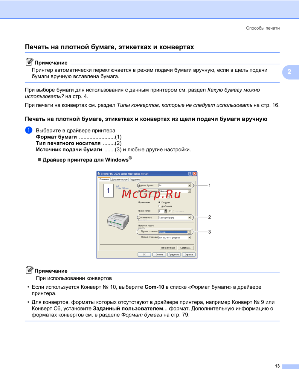 Brother HL-2035R — руководство по печати на плотной бумаге и конвертах [20/94]