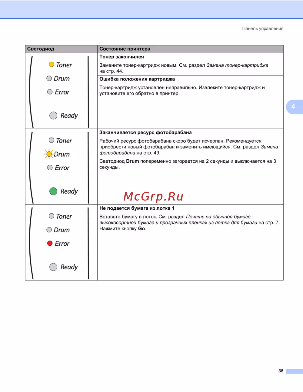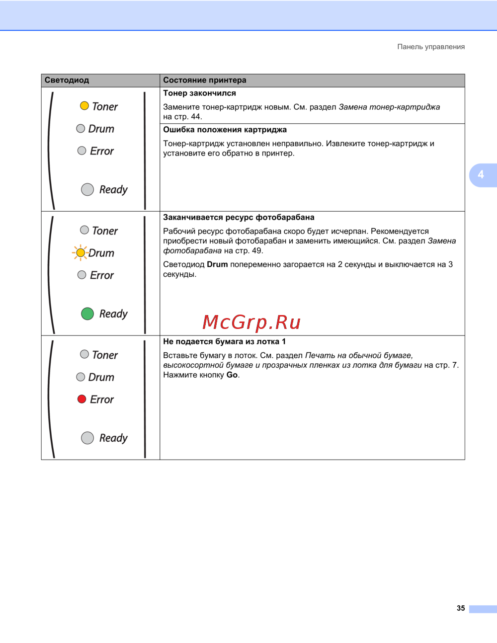 - Сообщение тонер закончился p.51