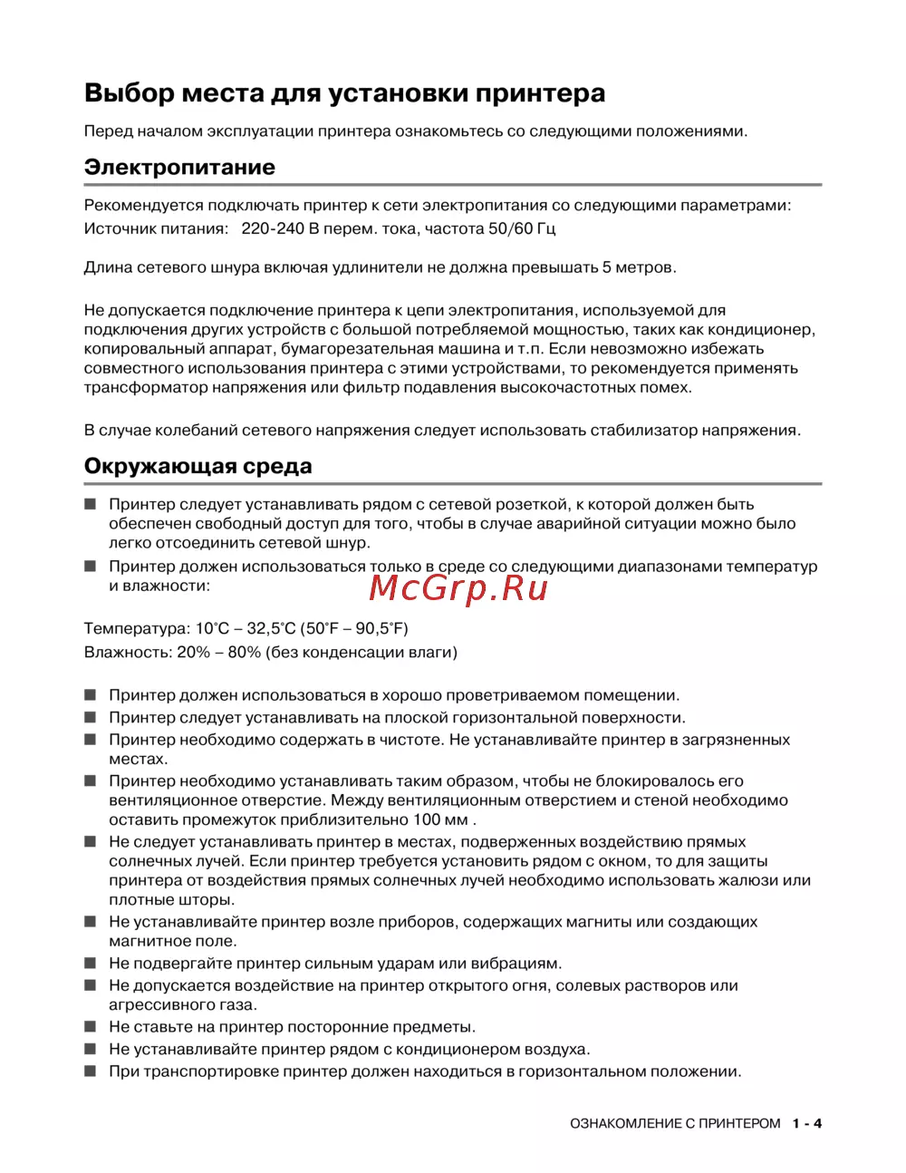 Перед началом эксплуатации принтера ознакомьтесь со следующими положениями.