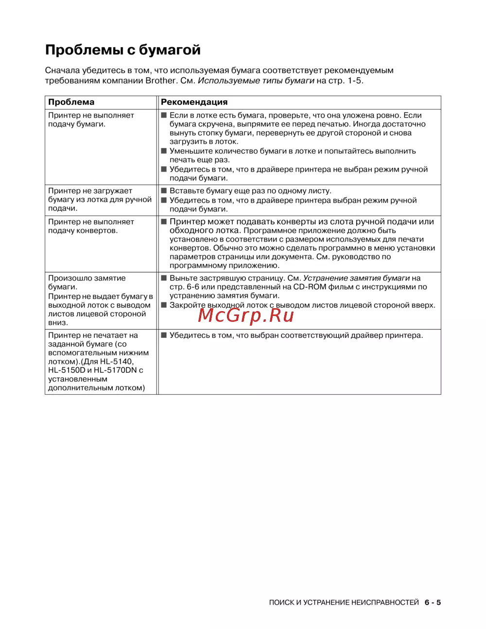 - Сначала убедитесь в том что используемая бумага соответствует рекомендуемым требованиям компании brother см используемые типы бумаги на стр 1 5 p.111