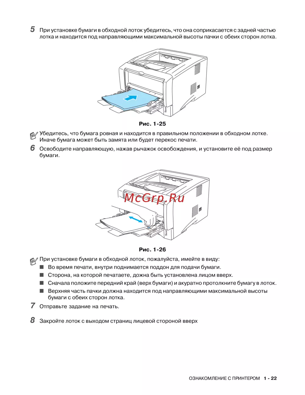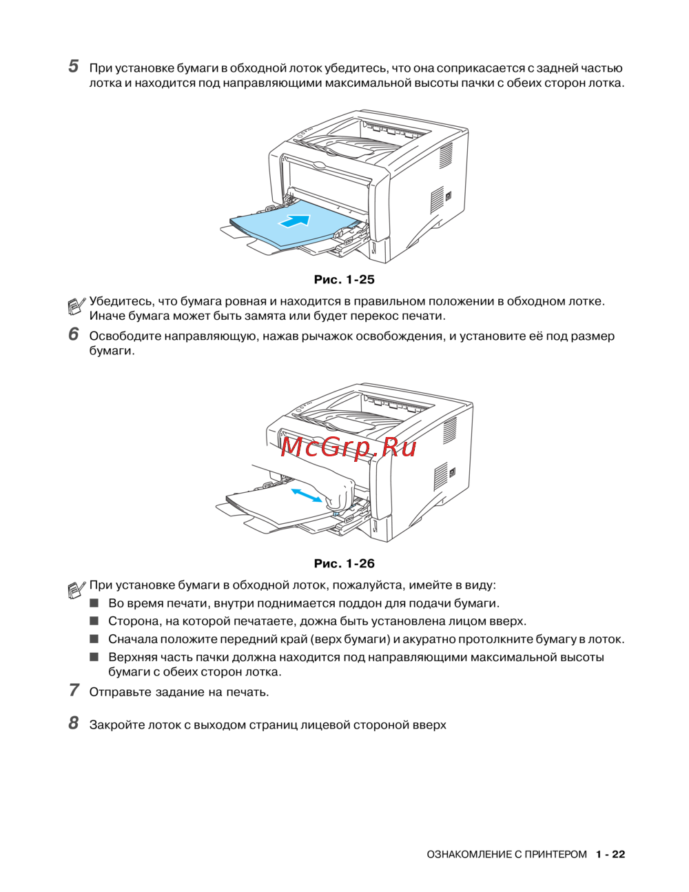 - Печать на плотной бумаге и на открытках из лотка для ручной подачи бумаги для hl 5130 и hl 5140 p.24