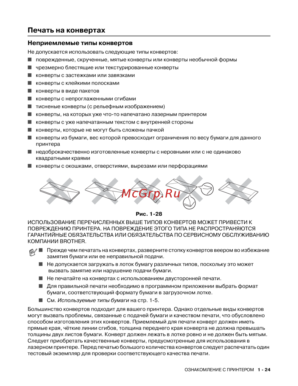 - Печать на конвертах из обходного лотка для hl 5150d и hl 5170dn p.36