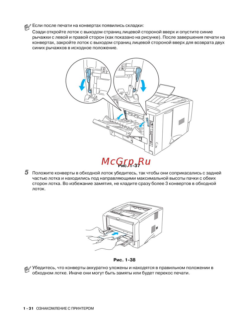 Brother HL-5140 — правильная загрузка конвертов в принтер для качественной печати [38/138]