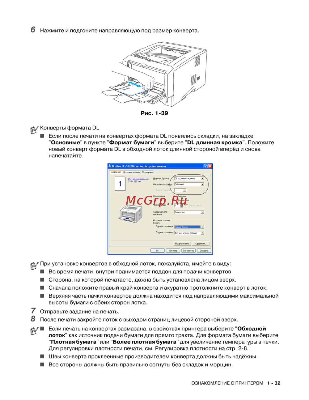- Печать на конвертах из обходного лотка для hl 5150d и hl 5170dn p.36