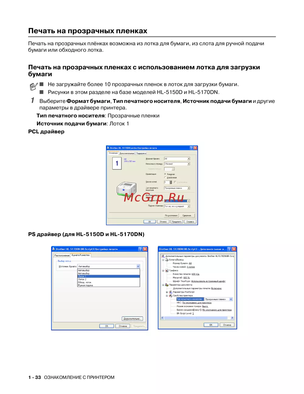 - Печать на прозрачных плёнках из обходного лотка для hl5150d и hl5170dn p.46