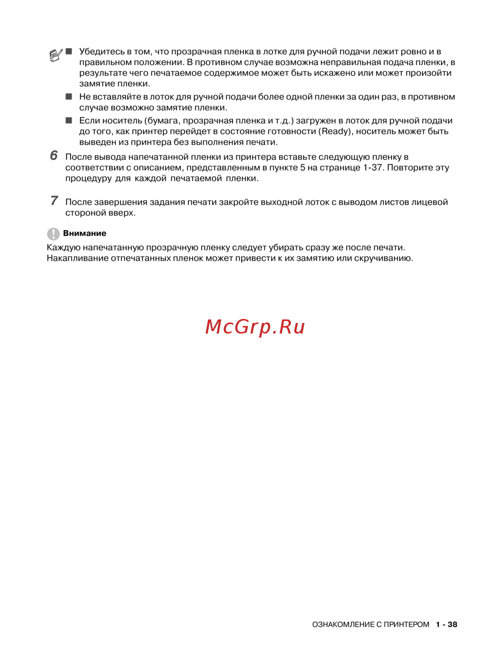 - Печать на прозрачных пленках с использованием лотка для загрузки бумаги p.40